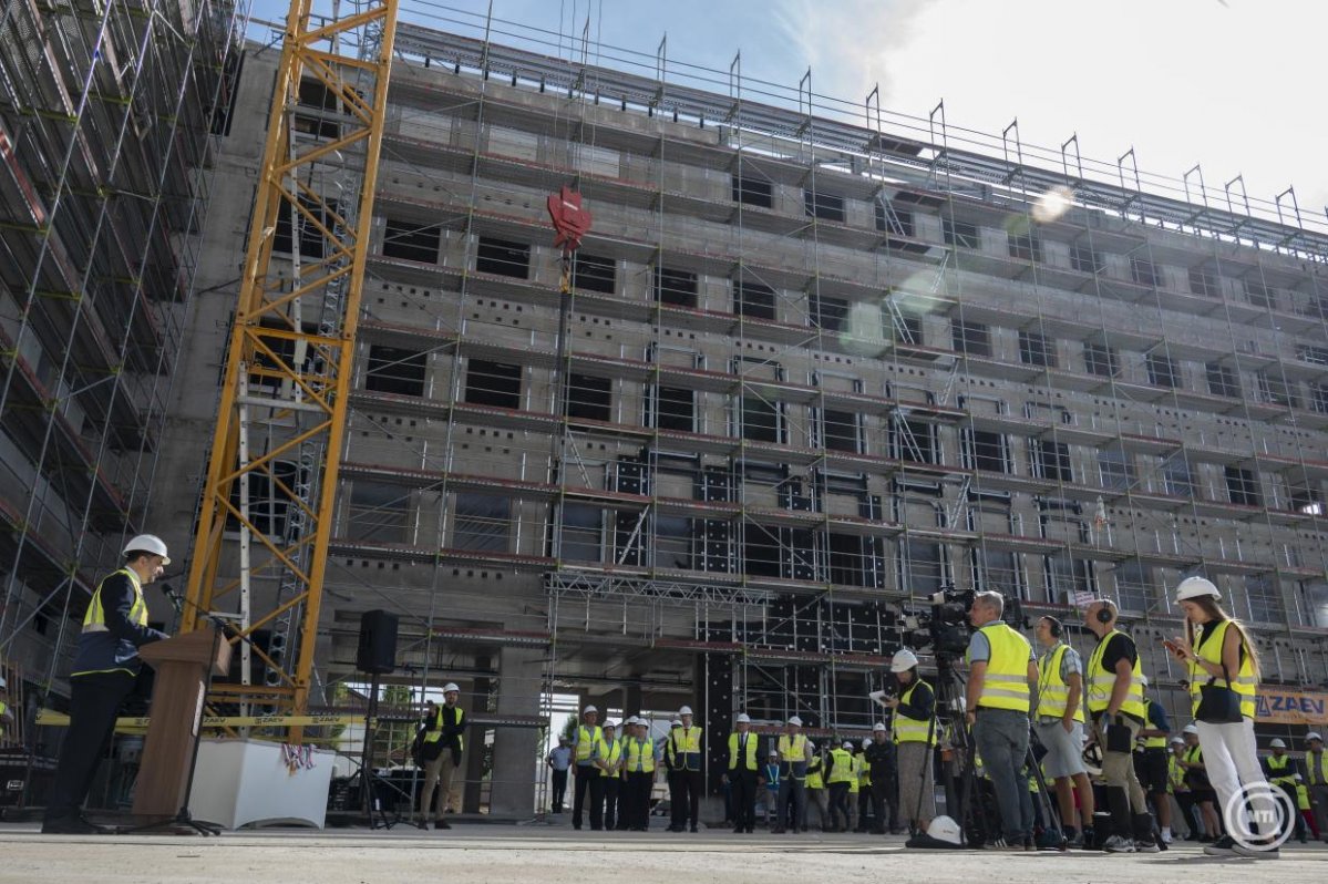 Résztvevők a Nemzeti Közszolgálati Egyetem (NKE) Ludovika Campuson épülő Katasztrófavédelmi Intézetének bokrétaünnepén (Fotó: MTI/Szigetváry Zsolt)