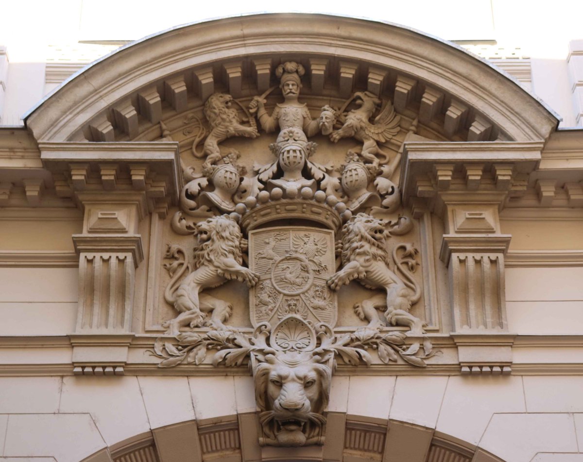 A Reviczky utcai oldalon látható Károlyi-címer, valamint az udvari palotahomlokzaton feltűnő házassági címer teljes családi címereket megjelenítő ábrázolás, amelyek az épület homlokzatát méltó módon díszítik. De több helyen is – mind az épület külső homlokzatán, mind az enteriőrben – előfordul nem is egy olyan díszítmény, mely a Károlyi- és a Csekonics-címerből veszi a képi világát. Azonban ez már egy másik, ugyancsak izgalmas heraldikai történet.