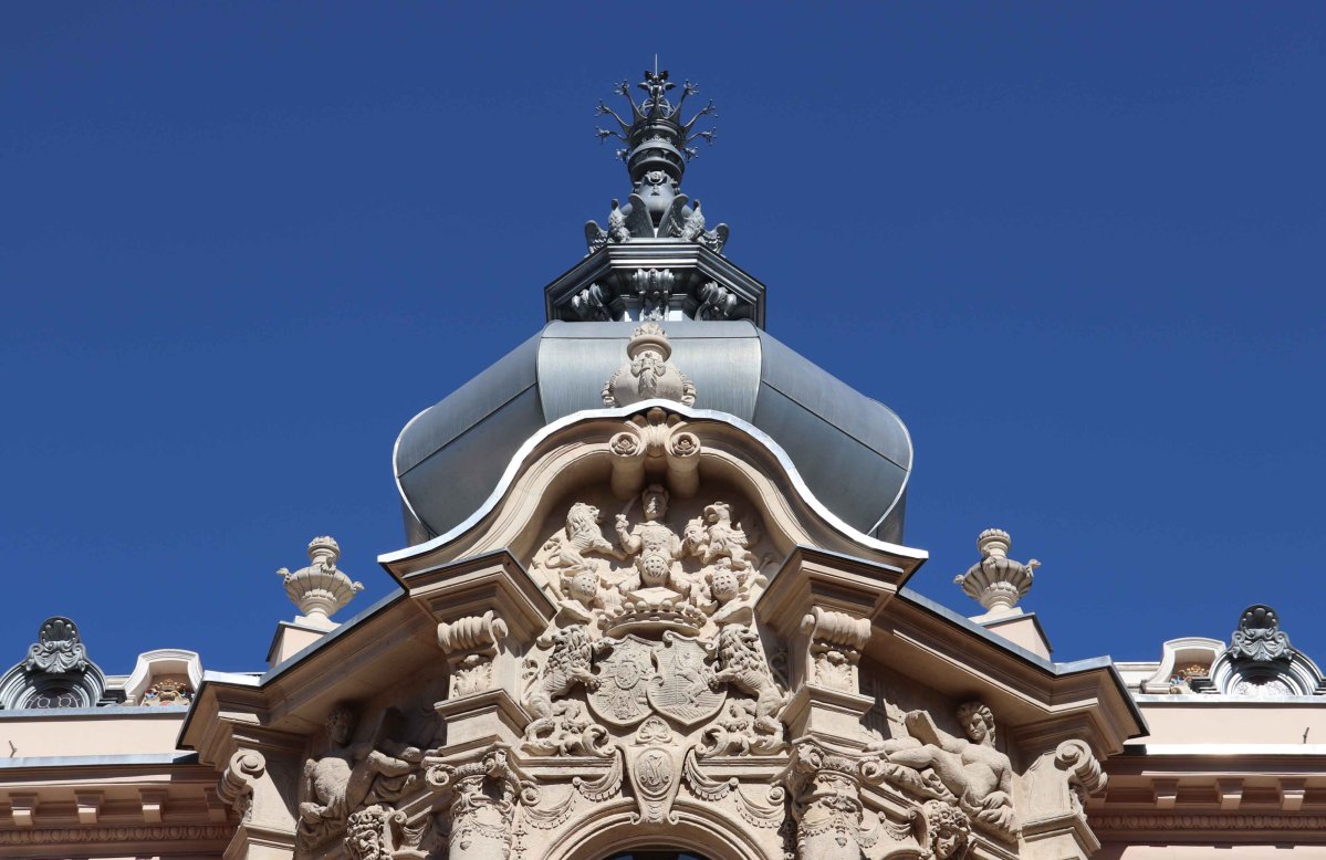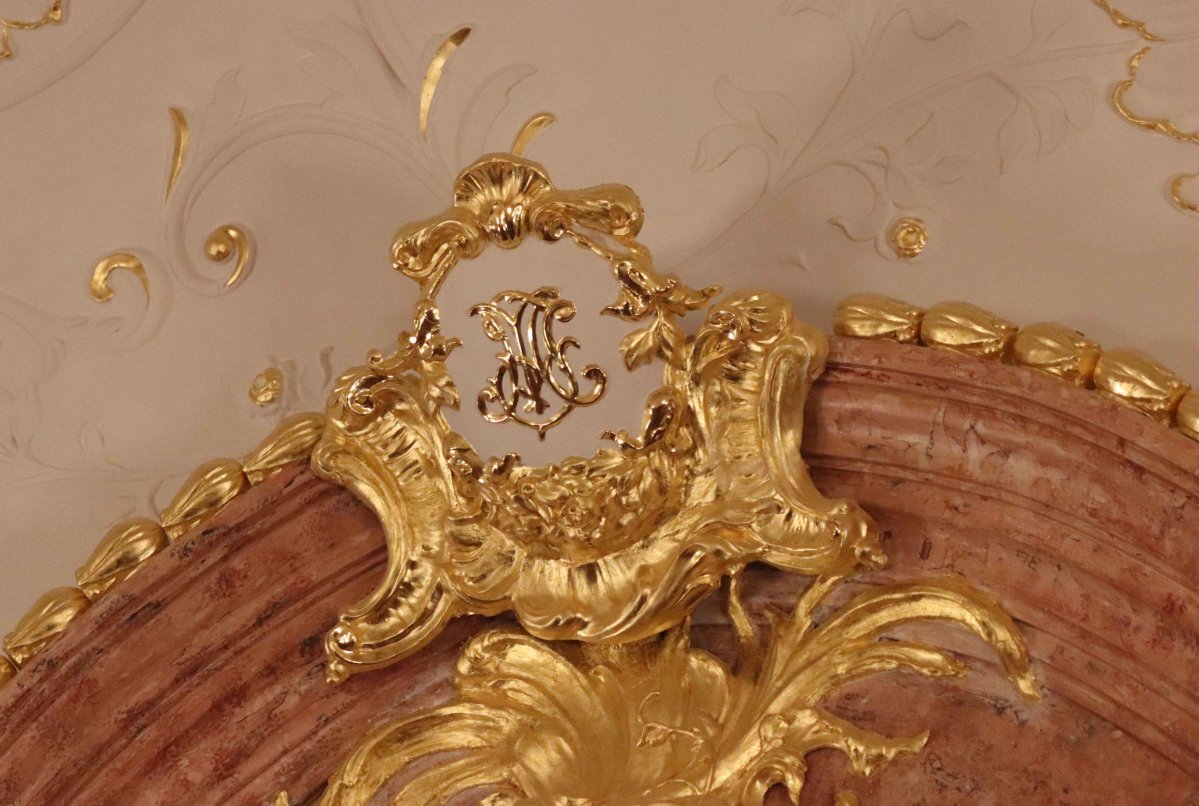Az M I betűkapcsolat azonban nem csak a külső homlokzaton figyelhető meg, hanem feltűnik még a palota erkélyének oszlopán, valamint a palotabelsőben az egykori ebédlő mennyezeti díszei között, s talán még a bálterem zenekarzat melletti kartusában lévő vonalkombinációból is ez a két betű olvasható ki.
