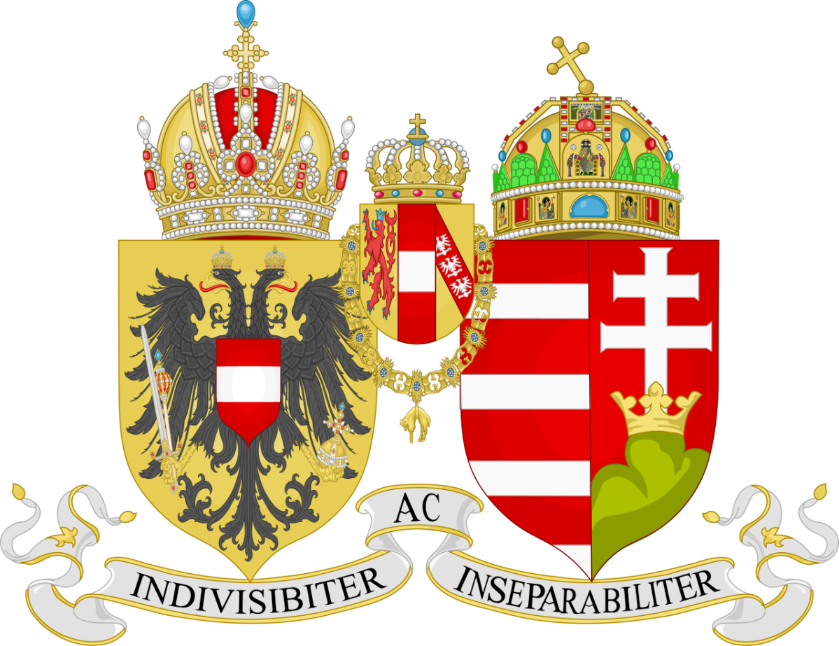 Az előbbinél gyakoribb megoldás, mikor a két pajzsot kissé egymásba fonva, összefűzve ábrázolják. Ez utóbbi látható a Károlyi–Csekonics-palotánál is.