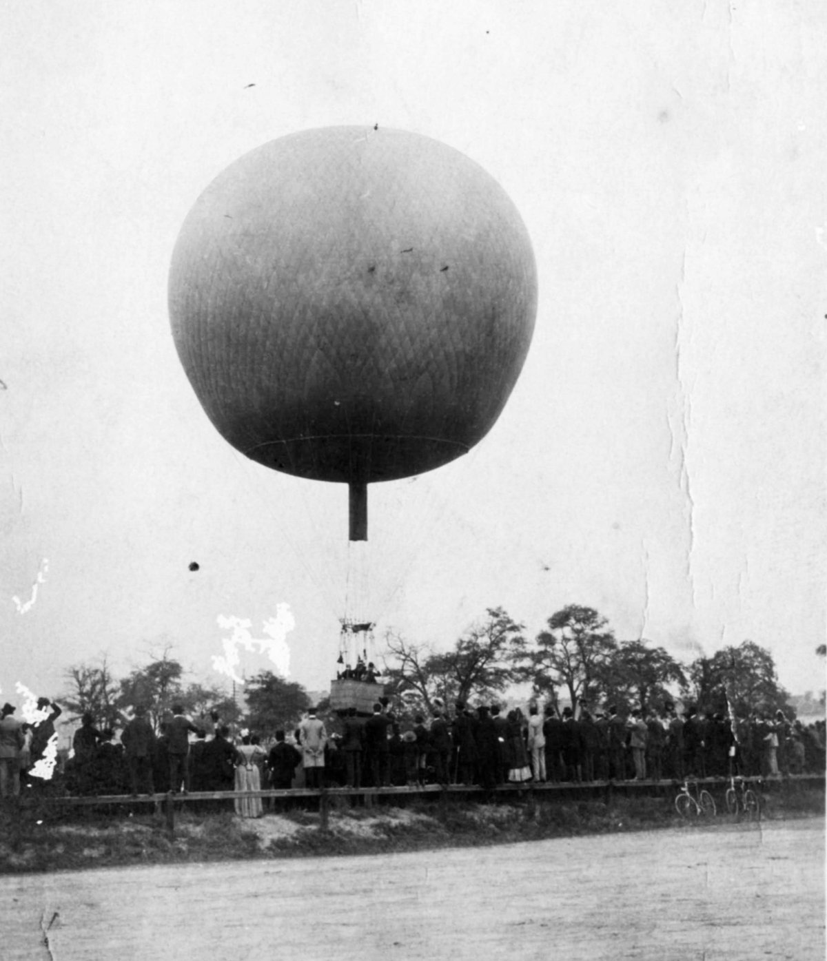 Nyitókép: Egy léghajó a Városligetben, de 1896-ban, ami egy kötött léghajó volt (Fotó: FSZEK Budapest Gyűjtemény)