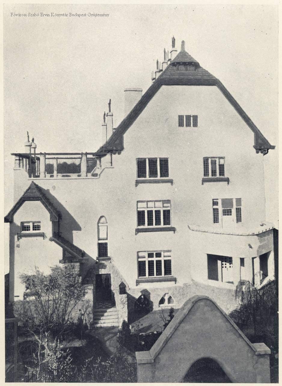 His first private home was designed for the writes Dezső Malonyay under 5 Izsó Street (1905–1906). The house shows a strong English influence, with Hungarian taste. While redesigned in 1912–1913, the house still reflects Lajta's original concept (Photo: FSZEK Budapest Collection)