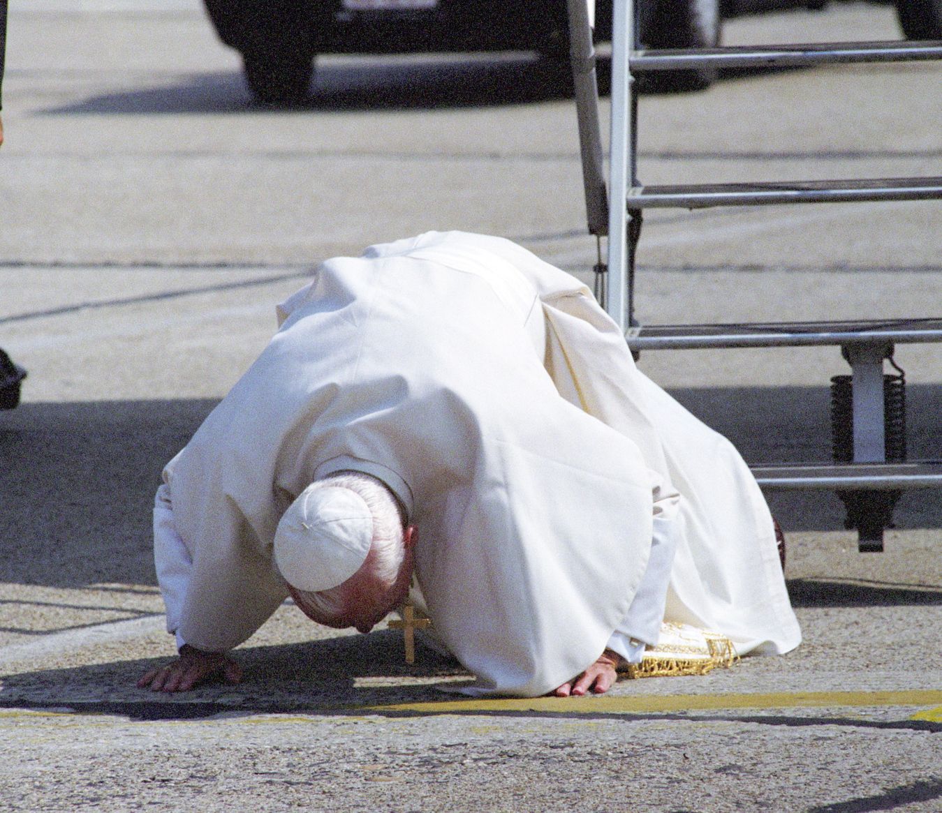 The Pope kissing Hungarian soil at Ferihegy Airport, 16 August 1991 (Photo: MTI/Soós Lajos)