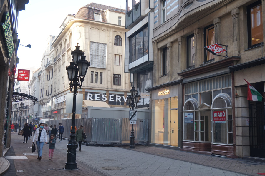 On Váci Street looking towards Szabadsajtó Street, passers-by first see the railings and temporary offices set up for the construction site (Photo: pestbuda.hu)