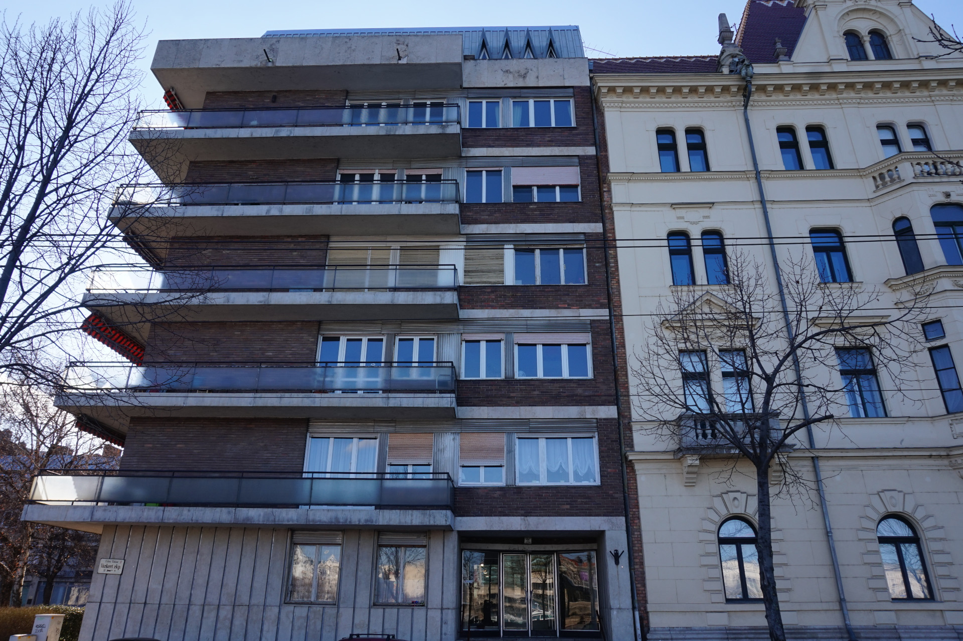 The much-criticised Fontana Building was designed by the architect György Vedres. He penned the detailed redevelopment plan of the city centre, which was approved in 1965, the transformation of Ferenciek Square (then Felszabadulás Square) and the construction of passage systems such as Kígyó-Courtyard, and retail-oriented reconstructions in the 5th District. He designed the residential buildings at 11 Várkert Embankment (1959) and 30 Bem Embankment (1967). The creation of the arcade at the corner of Kossuth Lajos Street and Petőfi Sándor Street was also part of his concept. He is noted for saving the art Noveau pharmacy in the area.