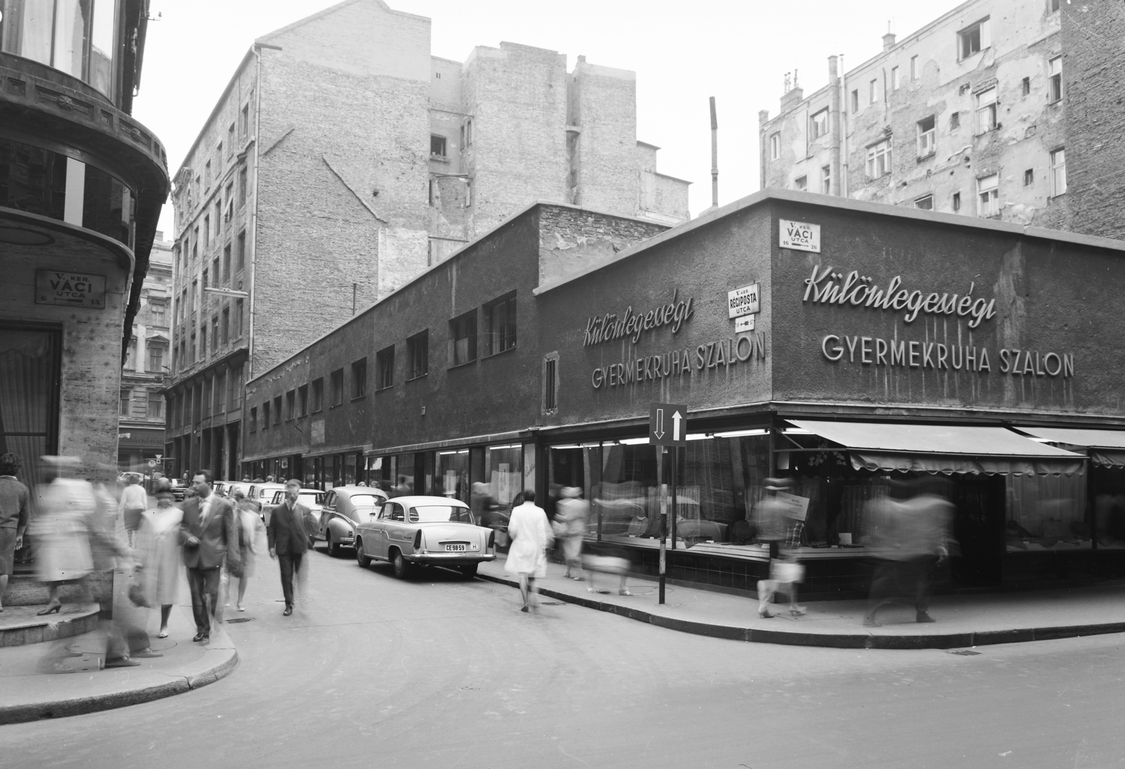 The corner of Váci Street and Régi Posta Street in 1963. Preparations for the construction of the Fontana Building began in 1969 (Photo: Fortepan/No.: 3794)