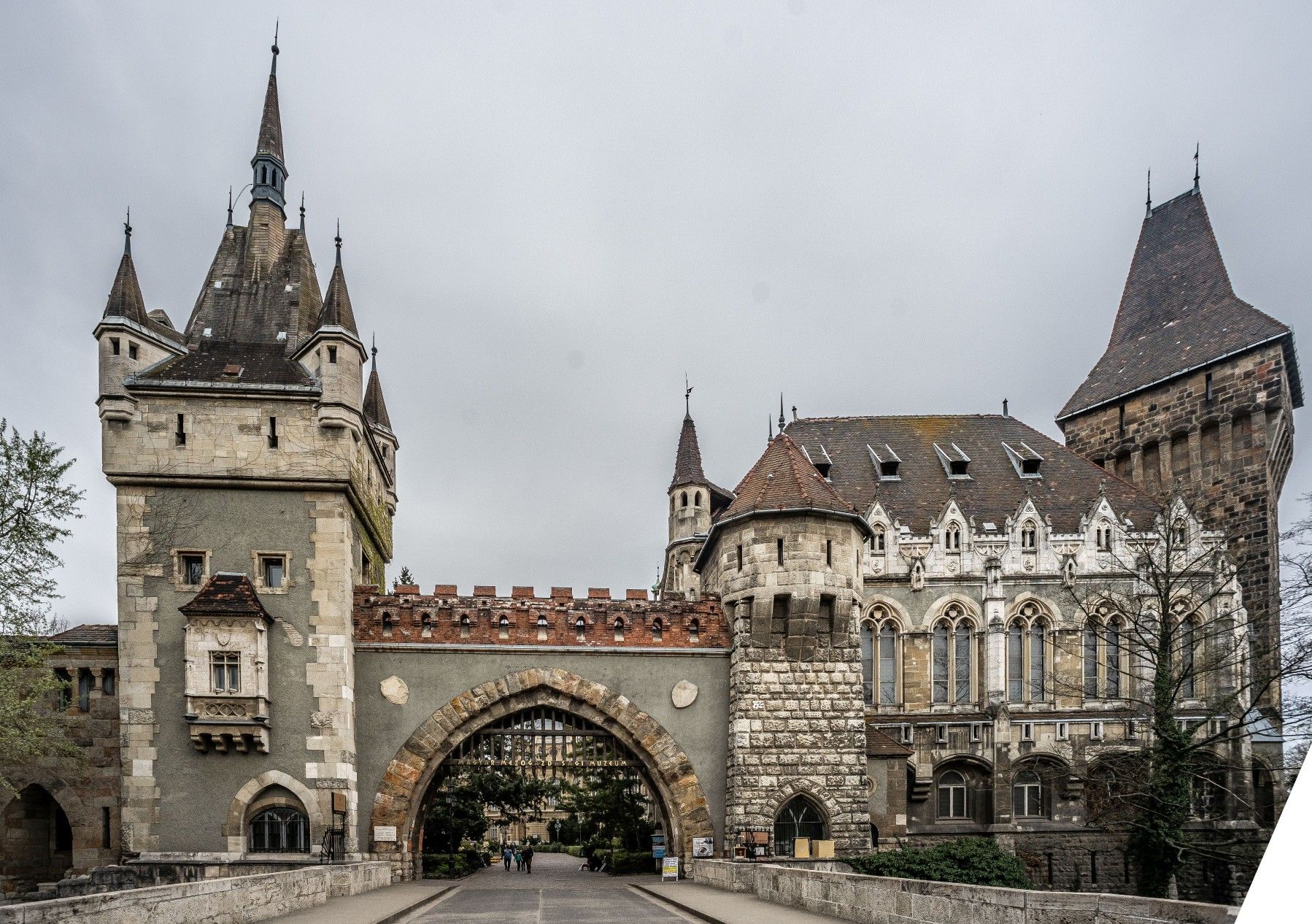 The building of the Historical Main Group of the exhibition was rebuilt from more lasting materials ten years after the fair's closing. Among the details of the castles and town halls built hundreds of kilometres apart in different eras, the unit evoking the Castle of Vajdahunyad in southern Transylvania is the most evocative. In connection with the Neo-Gothic part, which evokes the glorious age of the Hunyadi family, the entire building complex is often mentioned by the residents of the capital as Vajdahunyad Castle.