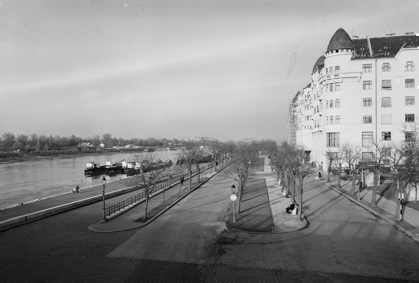 Detail of Jászai Mari Square in 1960, to the right, the Palatinus Houses where the actress lived (Photo: Fortepan/UVATERV)